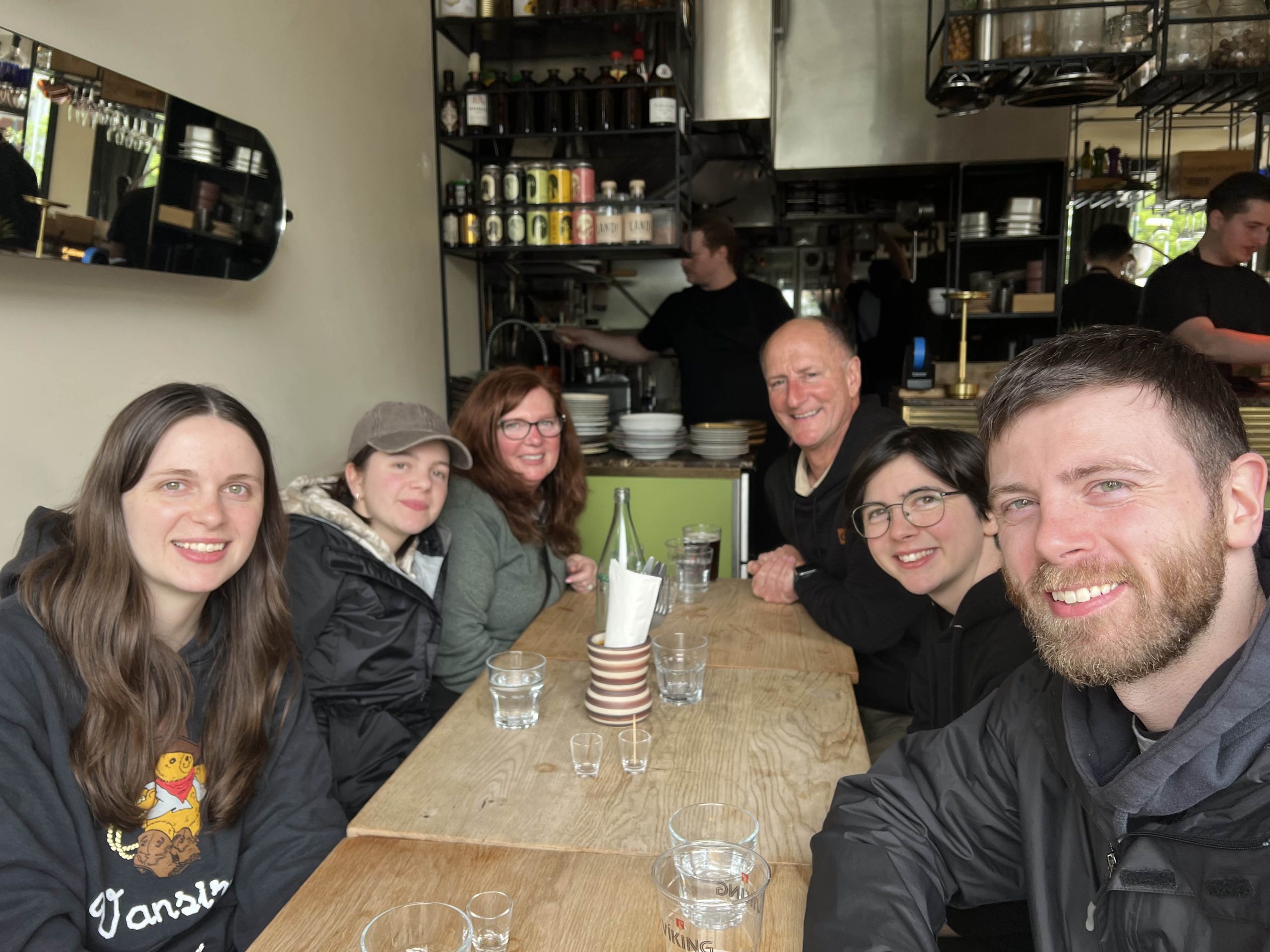After we were fully relaxed and our hands were prune-y, we headed back to Reykjavik. We had tapas at one place (even tried kangaroo steak, but not the smoked puffin 🫨), some local brews and dinner at another. Both places were stops we made during the food tour that we did on the day of our arrival. One more food stop was needed – many wanted the famous Reykjavík hot dog one more time! We grabbed a few souvenirs from some shops, including some Icelandic cakes, then made our way to our last night of accommodations. It seemed only fitting to watch food shows again.